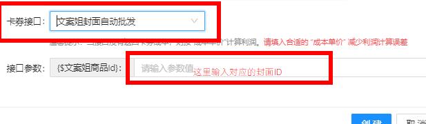 选择文案姐封面批发接口,注意的是文案姐商品id要填写正确。
